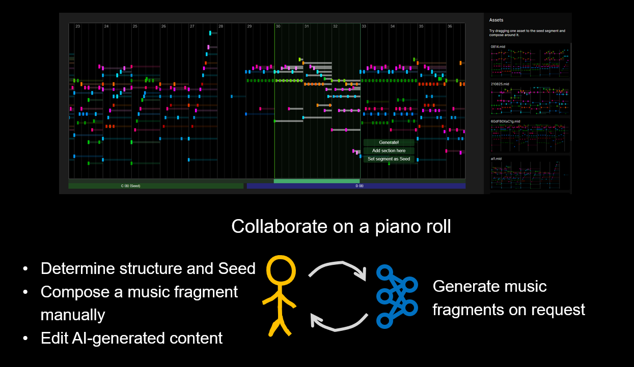 I always like my projects to be interactive, so I built an interface where users can iteratively co-create music with the model (demo around 0:40 in the video above).